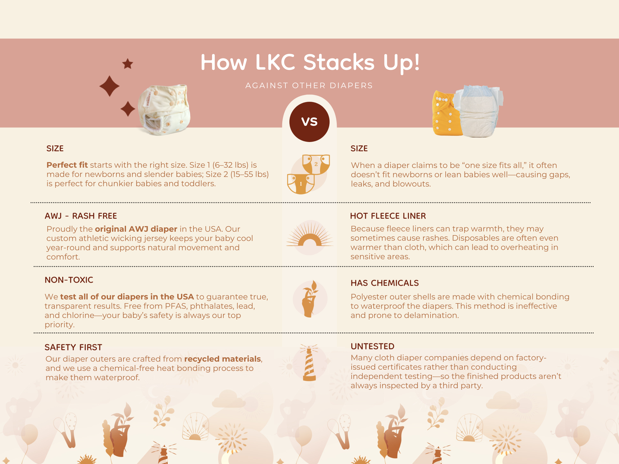Designed with the new cloth diaper parent in mind so you can quickly tell the difference between the rise and waist snap! No more guessing!